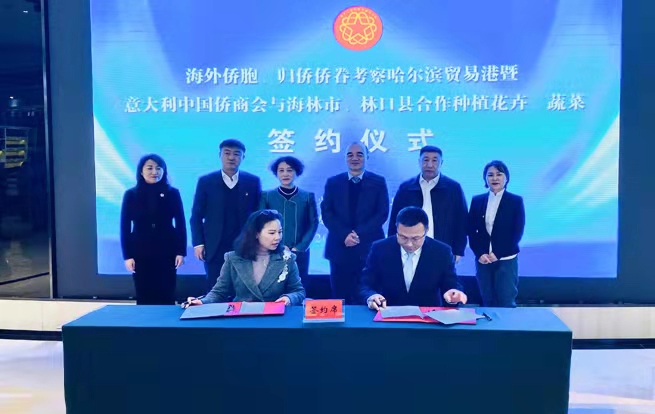 據(jù)了解,本次簽約是黑龍江省僑聯(lián)搭臺(tái)、企業(yè)唱戲,助力龍江發(fā)展所取得的又一成果。儀式上,意大利中國(guó)僑商會(huì)常務(wù)副會(huì)長(zhǎng)王文艷與海林市蔬菜種植基地負(fù)責(zé)人張玉祥簽署了雙方合作種植蔬菜協(xié)議,與牡丹江市林口鎮(zhèn)黨委書(shū)記葛建軍簽署了合作種植荷蘭郁金香花卉協(xié)議。