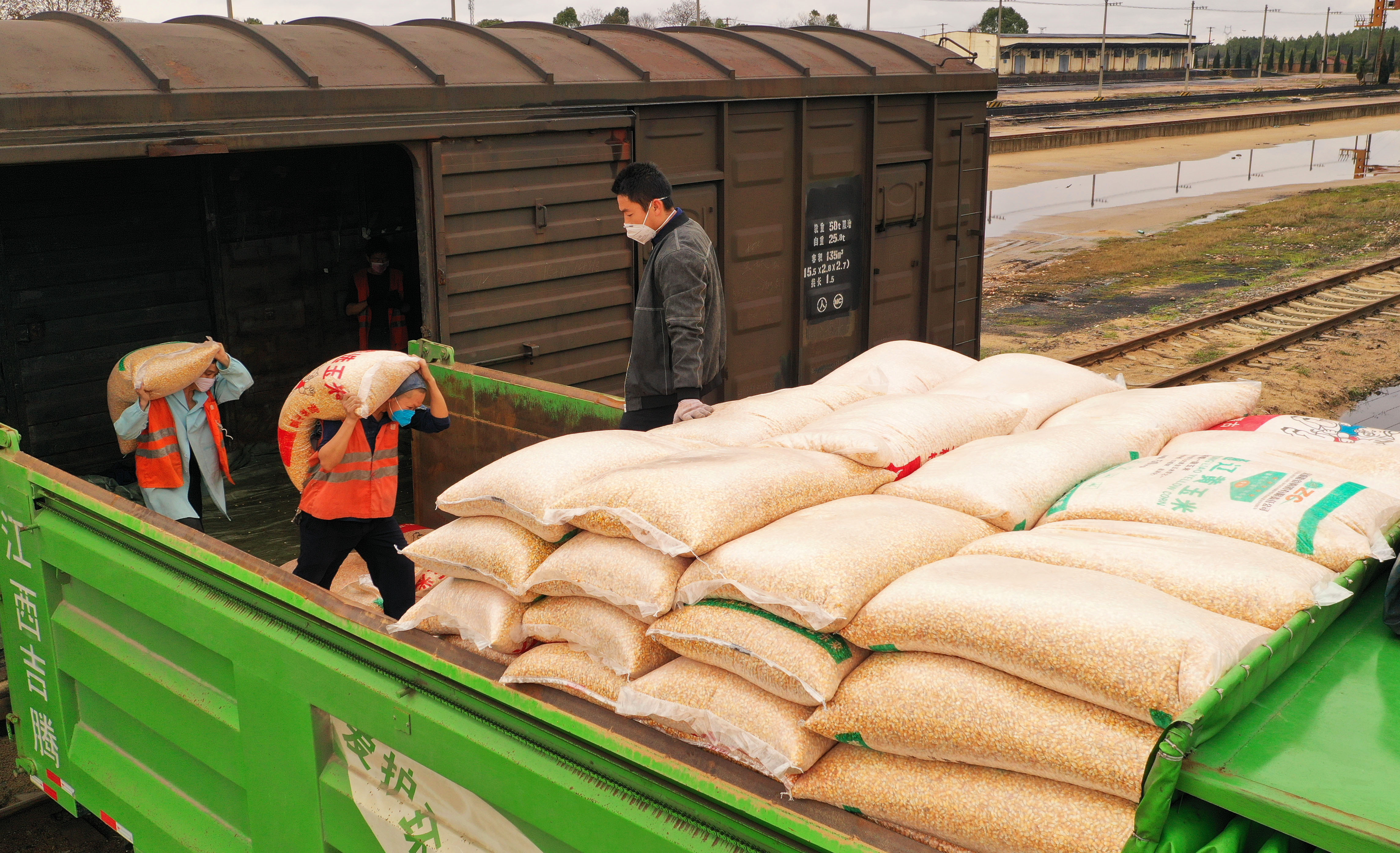 中國食品安全網(wǎng)訊(鄧和平)2月13日,在京九鐵路江西省泰和火車站貨場,工人正在從火車皮上卸載轉運玉米,保障疫情防控期間市場供應。新冠肺炎疫情發(fā)生后,泰和縣根據(jù)糧油市場動態(tài),科學謀劃,精心組織,通過鐵路運輸及時調(diào)運儲備玉米等糧油物資,確保糧油供應不脫銷、不斷檔,維護糧油市場秩序,助力疫情防控大局。