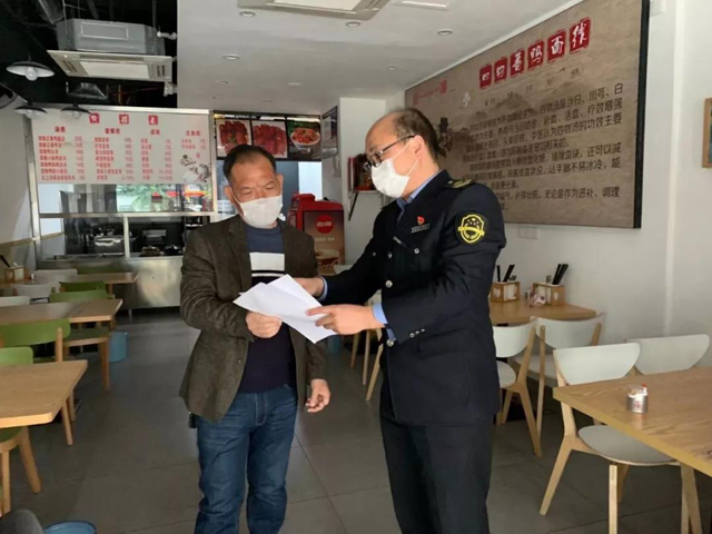 執(zhí)法人員在餐飲店現(xiàn)場執(zhí)法