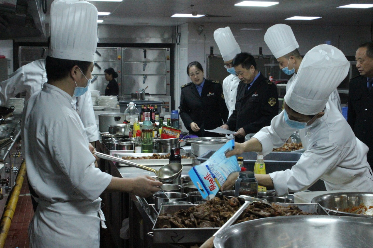 執(zhí)法人員在華美達進行食品安全監(jiān)管工作