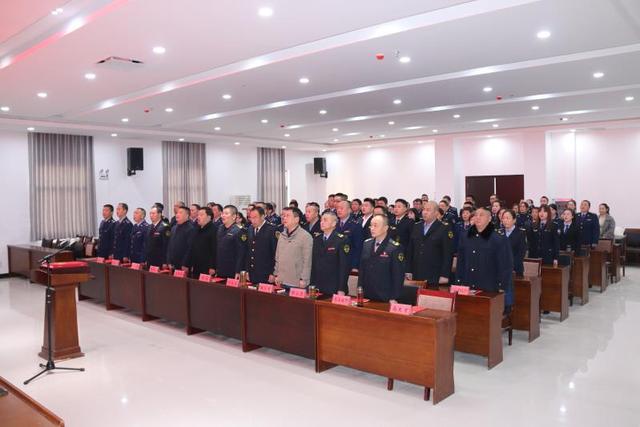 在全體起立唱中華人民共和國國歌后,宋驕陽來到領(lǐng)誓臺前,帶領(lǐng)全體干部職工面向憲法宣誓。隨后,全體與會人員一起觀看了《70年法治回眸,我們的自信在這里》視頻短片,引導(dǎo)干部職工始終牢記誓言,恪守憲法原則,履行憲法使命。