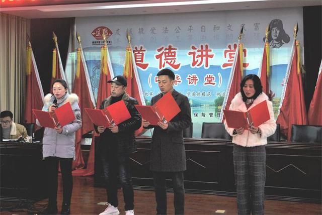 本次道德講堂以“提升道德修養(yǎng)、砥礪個(gè)人修為”為主題,共設(shè)置了開(kāi)場(chǎng)三問(wèn)、向“德”鞠躬、唱歌曲、學(xué)模范、談感悟、誦經(jīng)典、送吉祥、做善事八個(gè)環(huán)節(jié)。