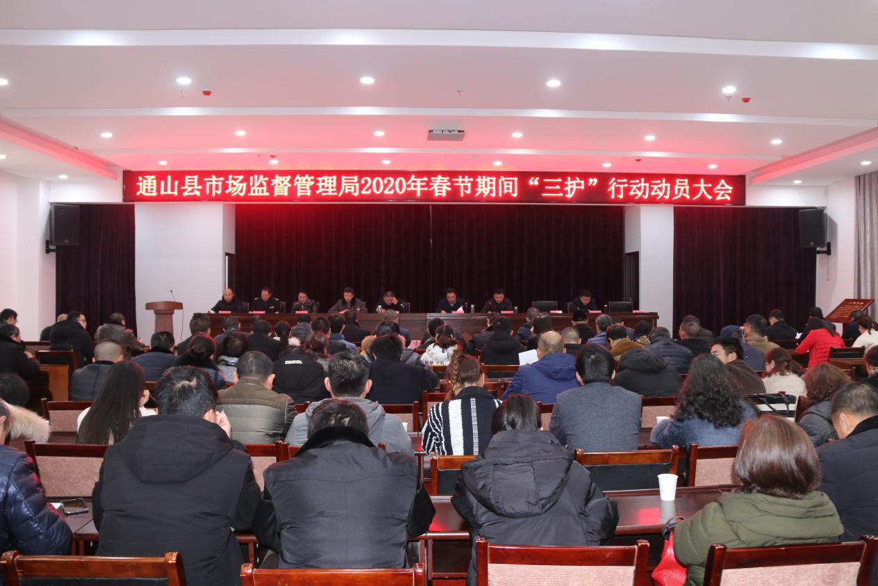 會(huì)議由通山縣市場(chǎng)監(jiān)管局黨組成員、副局長(zhǎng)張勇主持。通山縣市場(chǎng)監(jiān)管局黨組成員、副局長(zhǎng)舒進(jìn)學(xué)宣讀了《通山縣市場(chǎng)監(jiān)督管理局2020年春節(jié)“三護(hù)”行動(dòng)實(shí)施方案》,通山縣經(jīng)濟(jì)開(kāi)發(fā)區(qū)和大畈市場(chǎng)監(jiān)管所負(fù)責(zé)人分別作了表態(tài)發(fā)言。最后,通山縣市場(chǎng)監(jiān)管局黨組書(shū)記、局長(zhǎng)宋驕陽(yáng)作了動(dòng)員講話。