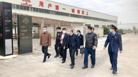 圖為區(qū)市場監(jiān)管局局長林毅、質(zhì)監(jiān)總工程師史冬冬、副局長劉巍帶隊深入福建磊豐家居集團(tuán)有限公司開展現(xiàn)場指導(dǎo)