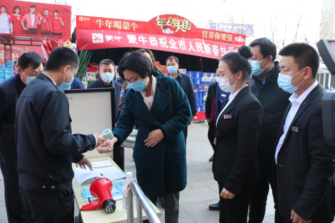 在美道家超市門口,孫淑芳自覺接受體溫檢測(cè),認(rèn)真查看人員登記臺(tái)賬,與超市負(fù)責(zé)人交談,了解疫情防控措施落實(shí)、農(nóng)副產(chǎn)品價(jià)格波動(dòng)、市場(chǎng)銷售等情況。