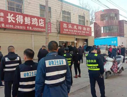 3月24日上午,漯河市市場監(jiān)督管理局源匯分局干河陳市場監(jiān)管所聯(lián)合源匯區(qū)城市管理局、干河陳鄉(xiāng)政府及動檢所等部門,組成了近50余人的執(zhí)法組,對轄區(qū)峨眉山路南段便民服務(wù)點附近的四家銷售活禽經(jīng)營門店進行查封,查扣經(jīng)營工具一批,取締了活禽交易宰殺點,要求以上店鋪立即停業(yè)整頓。