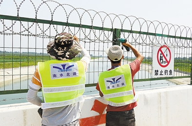 南水北調(diào)中線干線工程郟縣段總長(zhǎng)20.297千米,沿途39座交叉工程中有公路橋13座、生產(chǎn)橋11座。為確保汩汩清泉安全北上,該處嚴(yán)格按照上級(jí)要求,每天派出工程巡查員、土建維護(hù)員、設(shè)備巡視員和維護(hù)員等在一線勞作,對(duì)有破損的圍網(wǎng)、老化的固件等及時(shí)加固,全力保證水源不受污染。(張鴻雨)