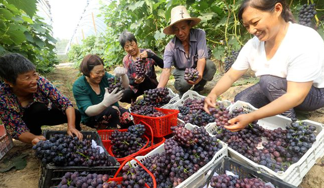 近日,信陽市光山縣十里鎮(zhèn)李堰灣村天豐生態(tài)農(nóng)業(yè)專業(yè)合作社的無公害葡萄喜獲豐收,社員正在忙碌收獲葡萄供應(yīng)縣城超市。