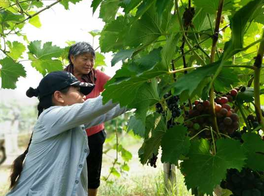 游客在野崗鎮(zhèn)胡莊村雙花葡萄莊園采摘葡萄