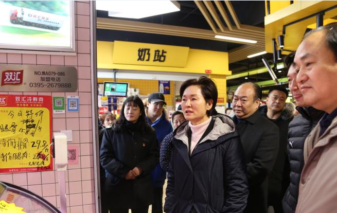 鄭州市市場監(jiān)管局局長李建霞(中)一行深入市場一線督導(dǎo)檢查