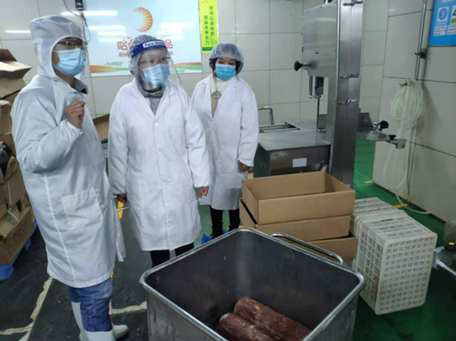 中原區(qū)市場(chǎng)監(jiān)督管理局副局長(zhǎng)陳衛(wèi)民帶領(lǐng)食品生產(chǎn)流通監(jiān)管科成員來(lái)到河南哈桑食品有限公司進(jìn)行督導(dǎo)檢查,主要檢查企業(yè)是否落實(shí)了進(jìn)貨查驗(yàn)記錄制度,索票索證是否齊全、票證貨物是否相符,進(jìn)口冷鏈?zhǔn)称焚x碼、貼碼情況,重點(diǎn)核查進(jìn)口冷鏈?zhǔn)称穲?bào)關(guān)單、入境貨物檢驗(yàn)檢疫、核酸檢測(cè)陰性報(bào)告、消殺證明等合格證明文件,確保食品來(lái)源有據(jù)可查,督促企業(yè)落實(shí)主體責(zé)任,加強(qiáng)人員、車輛進(jìn)出管理和健康監(jiān)測(cè),完善消殺設(shè)施配置及相關(guān)標(biāo)識(shí)提醒,從嚴(yán)從實(shí)從細(xì)抓好常態(tài)化疫情防控工作。