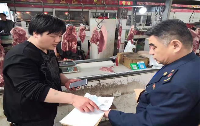 在檢查過程中,執(zhí)法人員督促指導(dǎo)生鮮肉經(jīng)營主體落實食品安全主體責(zé)任,從定點屠宰場采購豬牛羊等生鮮肉產(chǎn)品,嚴(yán)格落實進(jìn)貨查驗制度,做好臺賬記錄,留存動物檢驗檢疫相關(guān)票據(jù)憑證。針對檢查中發(fā)現(xiàn)的問題,執(zhí)法人員要求經(jīng)營主體立即整改,并做好回頭看工作,嚴(yán)防注水、無檢驗檢疫合格證明、來源不明的生鮮肉流入市場。