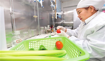 對(duì)選購(gòu)的新鮮蔬菜、肉類等進(jìn)行農(nóng)殘化驗(yàn),把好每一關(guān)。